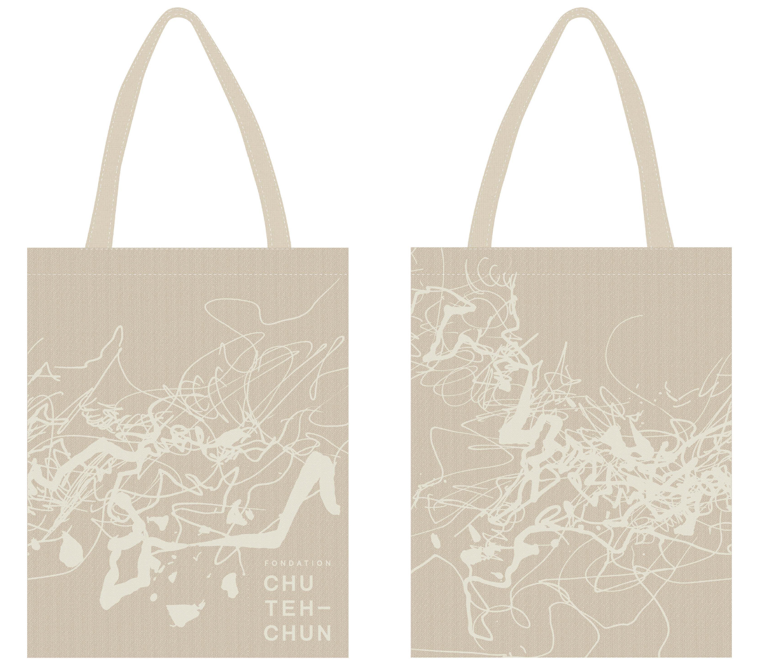 ✨ Motif jacquard : reproduction d’une encre de CHU Teh-Chun : « Sans Titre » – 1982 au recto et au verso, logo de la Fondation au recto, lancés coton bio